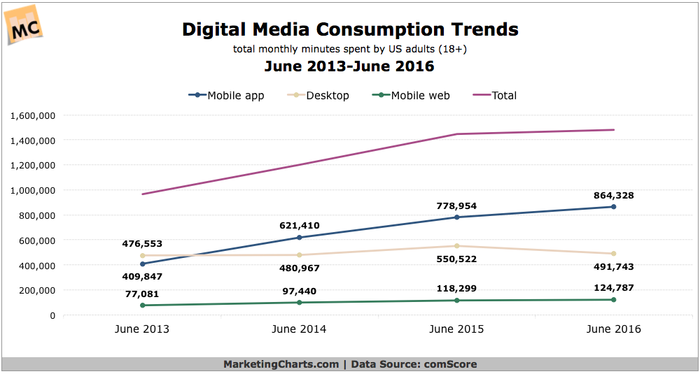 - Mobile apps have wildly surpassed desktops in digital media engagement.